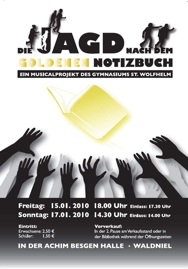Plakat: "Die Jagd nach dem goldenen Notizbuch"